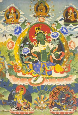 We employ rich symbolically-charged visualisations to experience ourselves arising from the state of emptiness as a Meditation Buddha, such as Tara. Meditational Buddhas are known as Yidams in Tibetan practice.